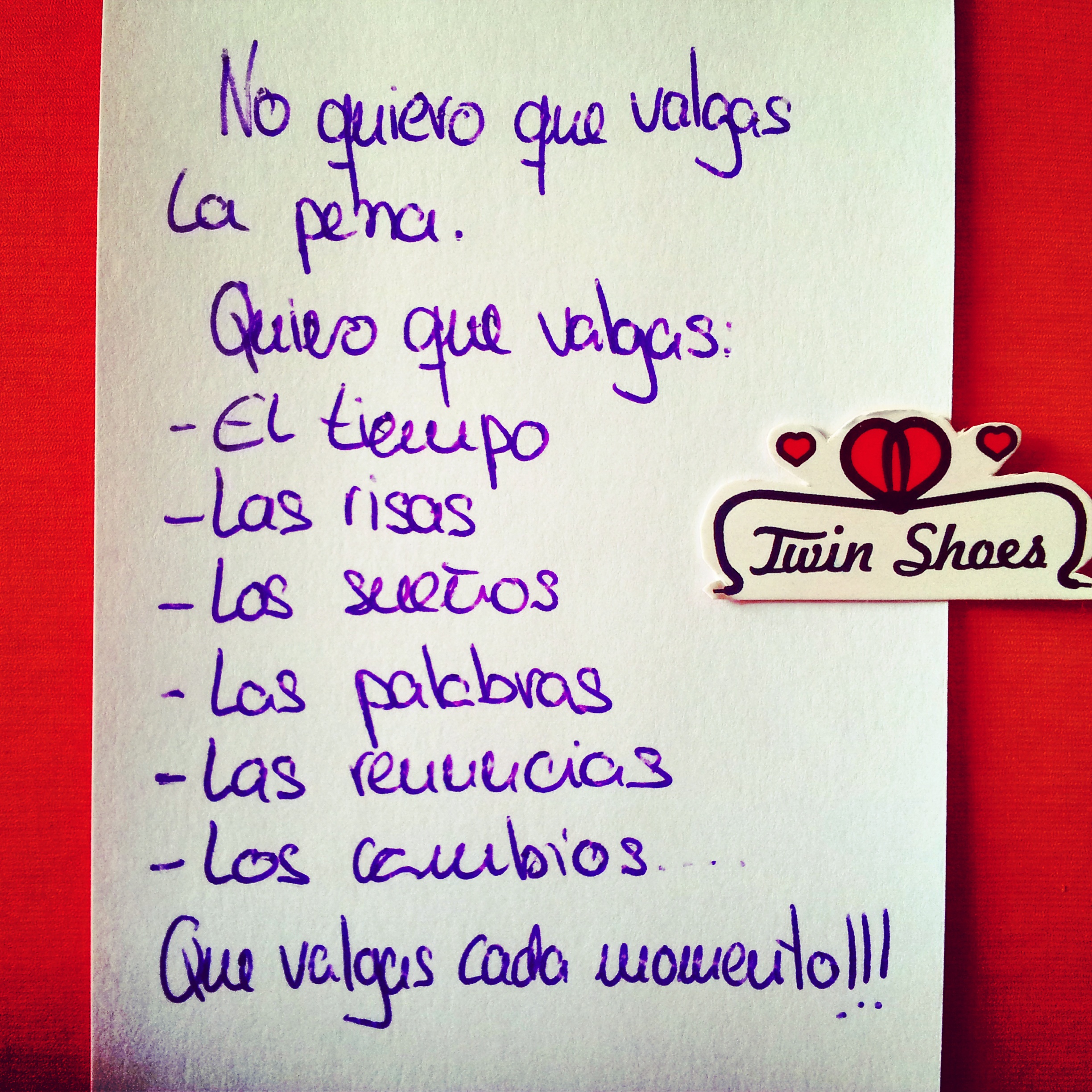 - No quiero que valgas la pena. Quiero que valgas el tiempo, las risas, los sueños, las palabras, las renuncias, los cambios… Que valgas cada momento!!!